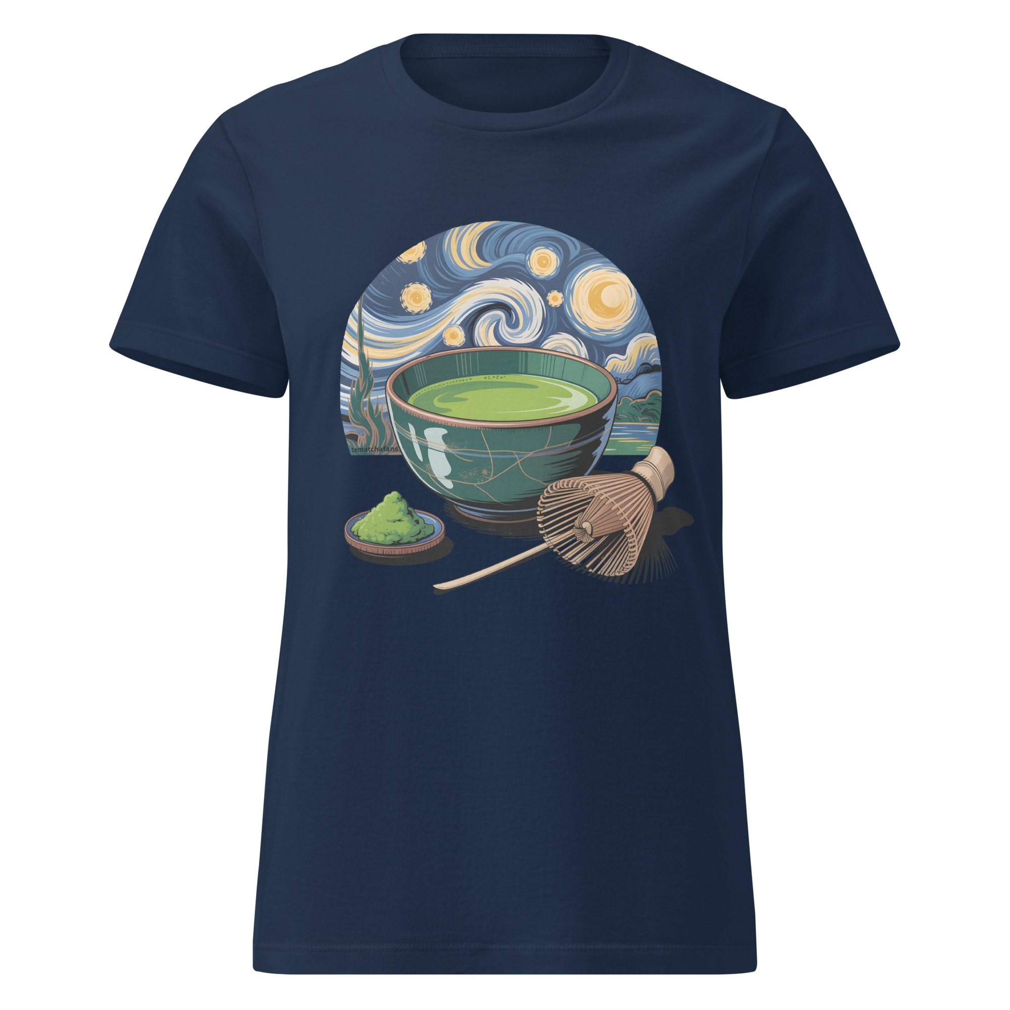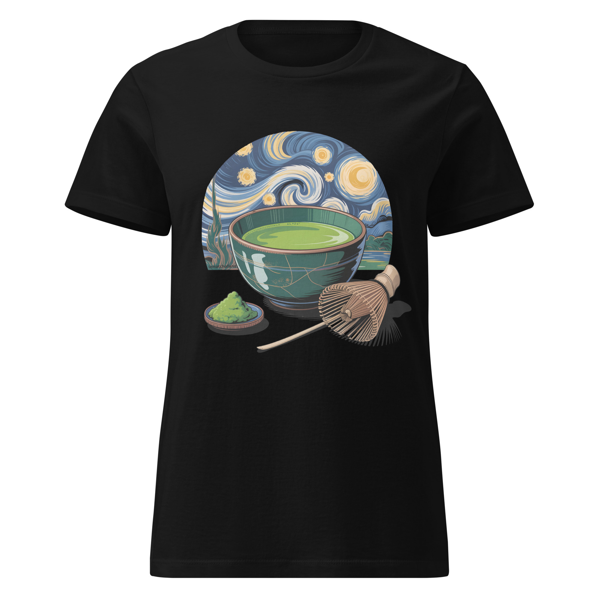 Si te gusta el té matcha o conoces a alguien al que le guste esta camiseta con un diseño original de un matcha tradicional con una ilustración de la noche estrellada de fondo es la tuya.